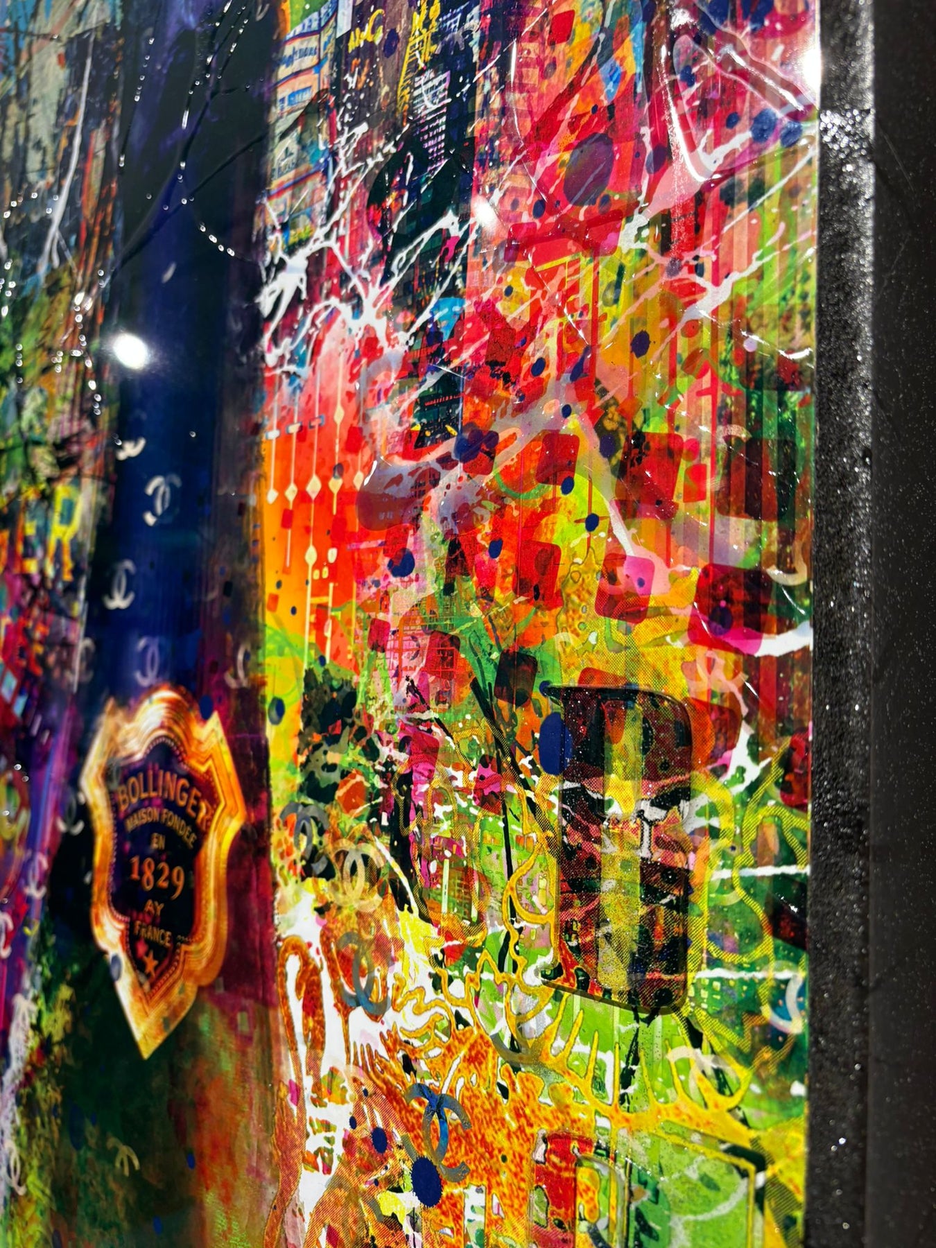 His frame of cultural reference expanded as he encountered different cities, from the renaissance rooms at the Uffizi to the explosion of street art in Amsterdam, Berlin and London and as a result, began to develop a distinctive personal style. Outside the cities, a three-month stint in the vineyards of Épernay provided the impetus for Miller’s most recent collection of work which we are proud to show in Startle, celebrating the world’s most iconic Champagne brands.