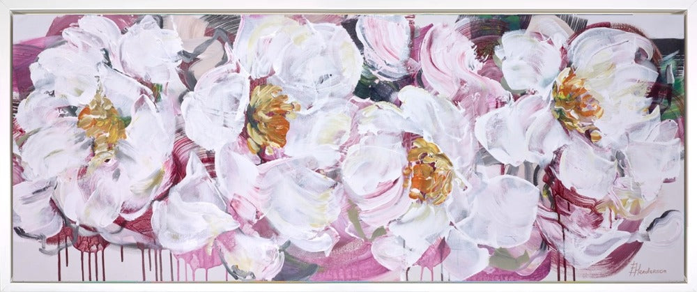 Henderson’s new collection of semi abstract florals are sophisticated and elegant; her palette is light and fresh while her shapes seem to emerge organically from the canvas to offer an electrifying viewing experience. Before she became an artist she was a florist owning her own shop, and she also worked in the field of interior design for a time. These experiences gave her a deep-seated love of the unlimited colours, varied textures and sheer beauty of flowers, as well as an appreciation of their metaphorical value: “A quickly fading bloom or an unopened bud reflect the types of changes we experience in life."