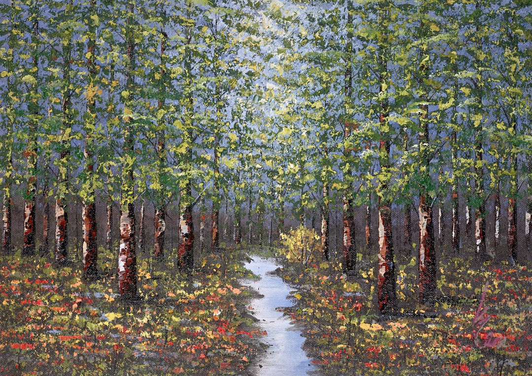 Each piece by Inam reflects his deep emotional connection to the natural environment, particularly the changing seasons. His landscapes often explore the symbolic strength of trees and the harmony found within nature, resonating with collectors who appreciate both beauty and meaning.