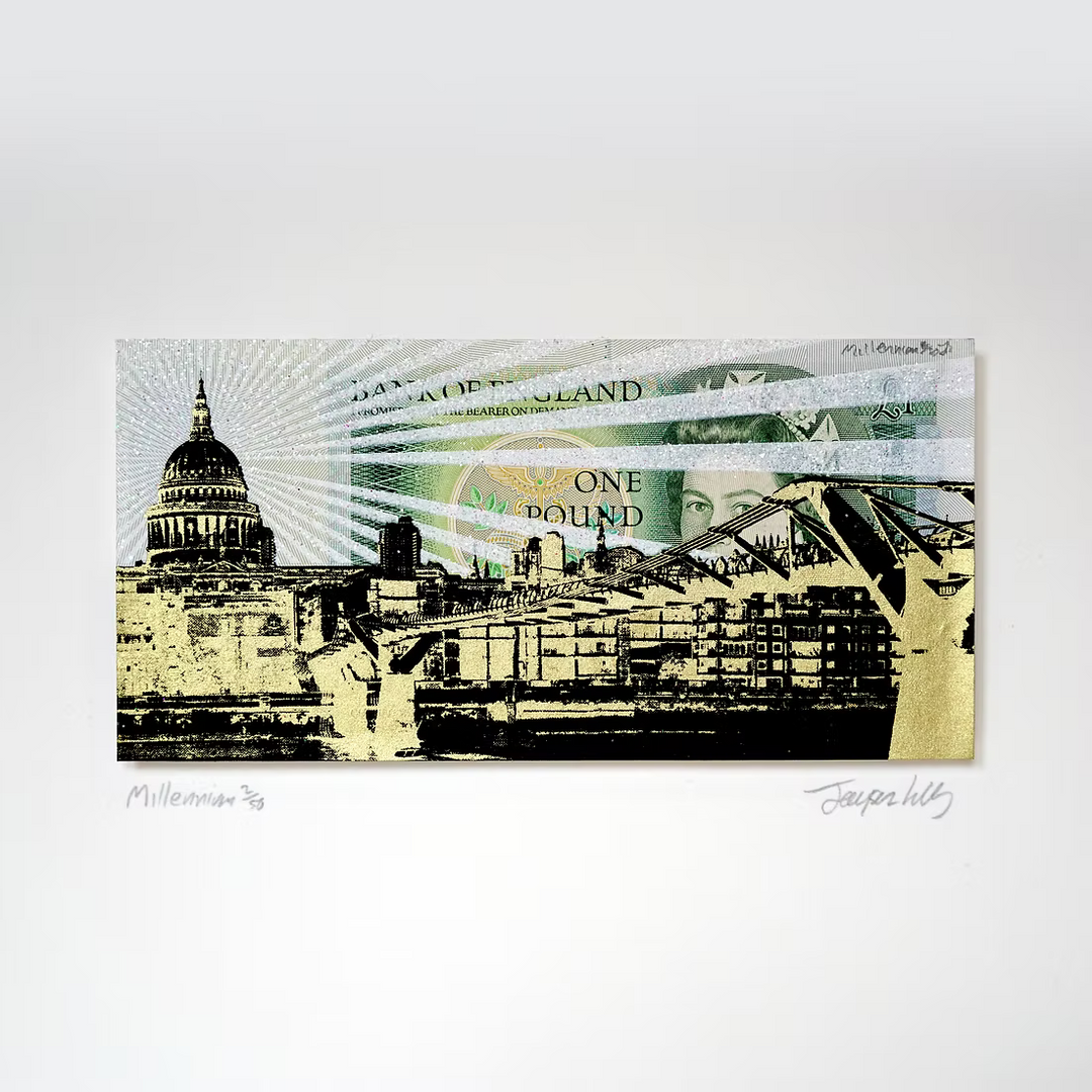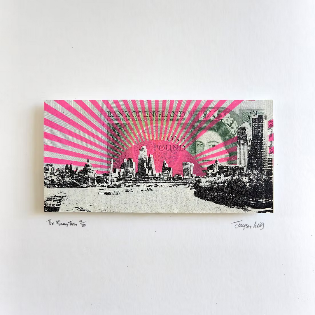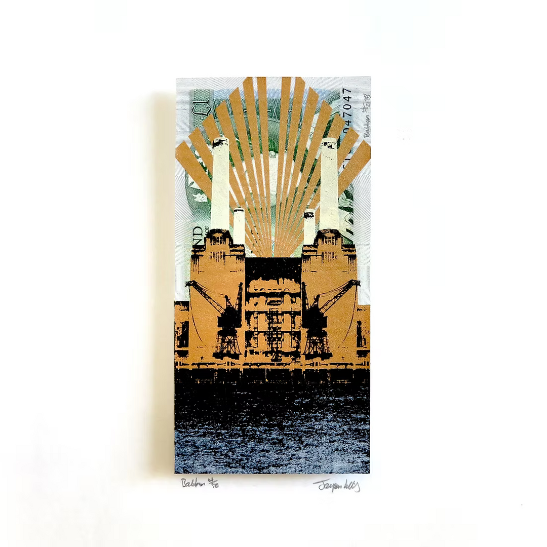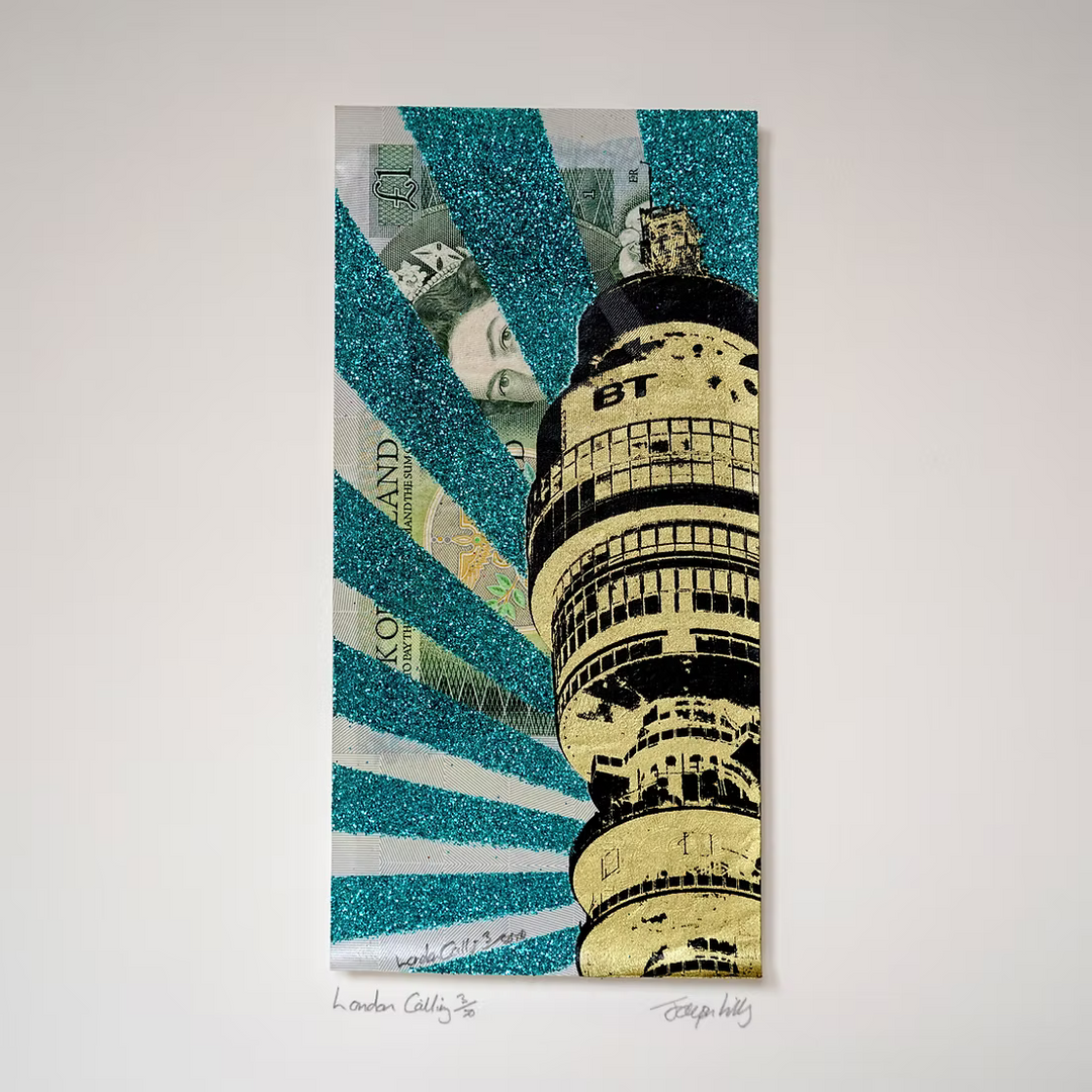Drawing inspiration from iconic skylines in London, New York, and Tokyo, Lilley combines bold architectural forms with intricate details, capturing the unique character of each city. He often integrates found materials such as Monopoly boards and banknotes, adding cultural symbolism to his art.