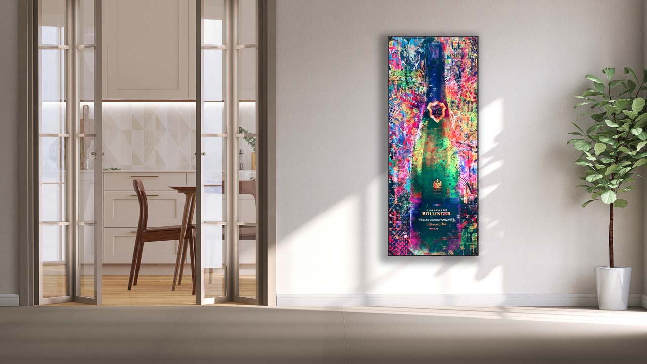 His frame of cultural reference expanded as he encountered different cities, from the renaissance rooms at the Uffizi to the explosion of street art in Amsterdam, Berlin and London and as a result, began to develop a distinctive personal style. Outside the cities, a three-month stint in the vineyards of Épernay provided the impetus for Miller’s most recent collection of work which we are proud to show in Startle, celebrating the world’s most iconic Champagne brands.